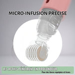 مجهزة أ نظام مبتكر 2 في 1 (الأسطوانة + خزان المصل المتكامل)، فهو يوفر تلقائيًا الكمية المثالية من العلاج أثناء الاستخدام، دون أي تسرب أو إهدار. يسمح زر التحكم الخاص به بالجرعات المنتظمة والدقيقة، مما يضمن تطبيقًا نظيفًا وفعالًا وآمنًا تمامًا.
