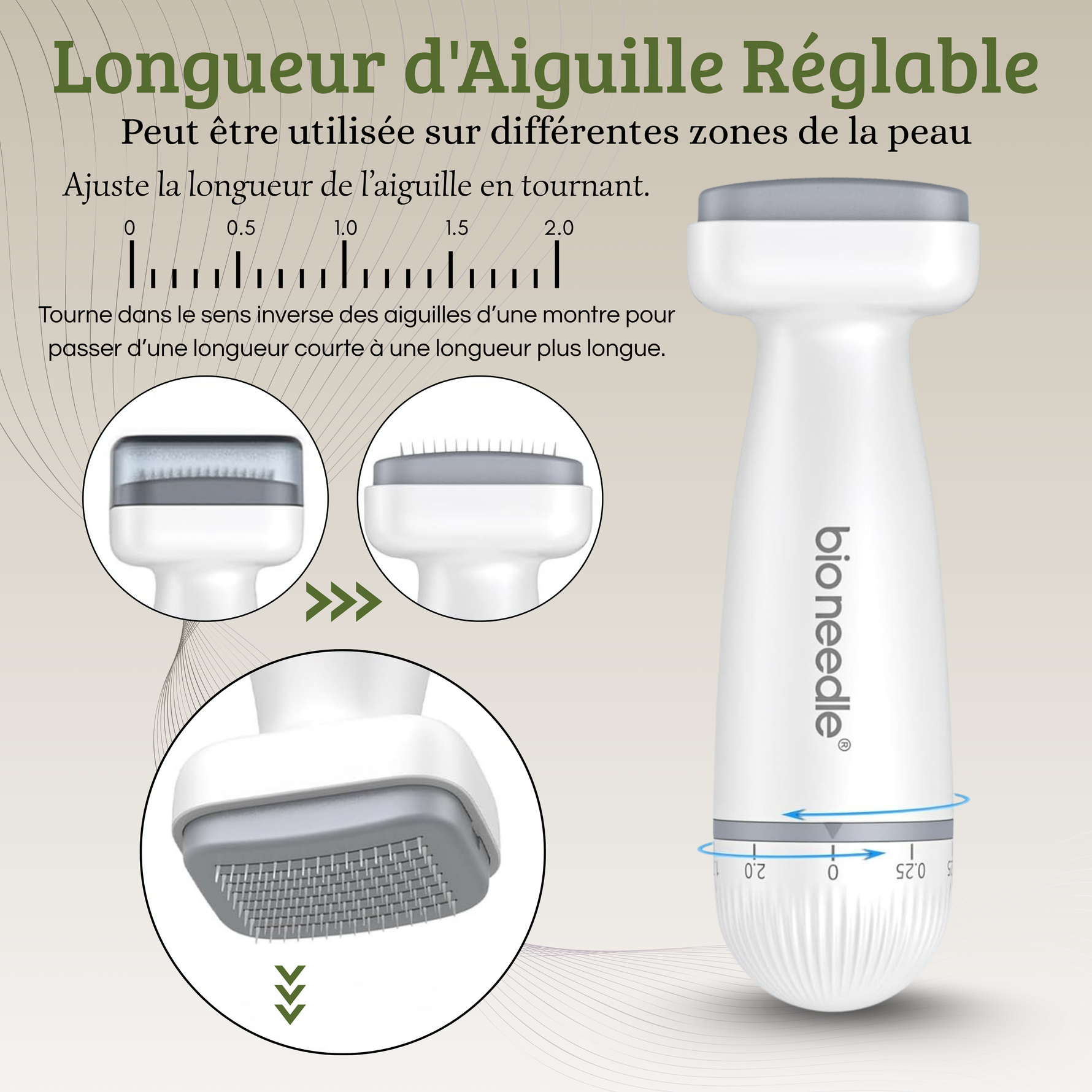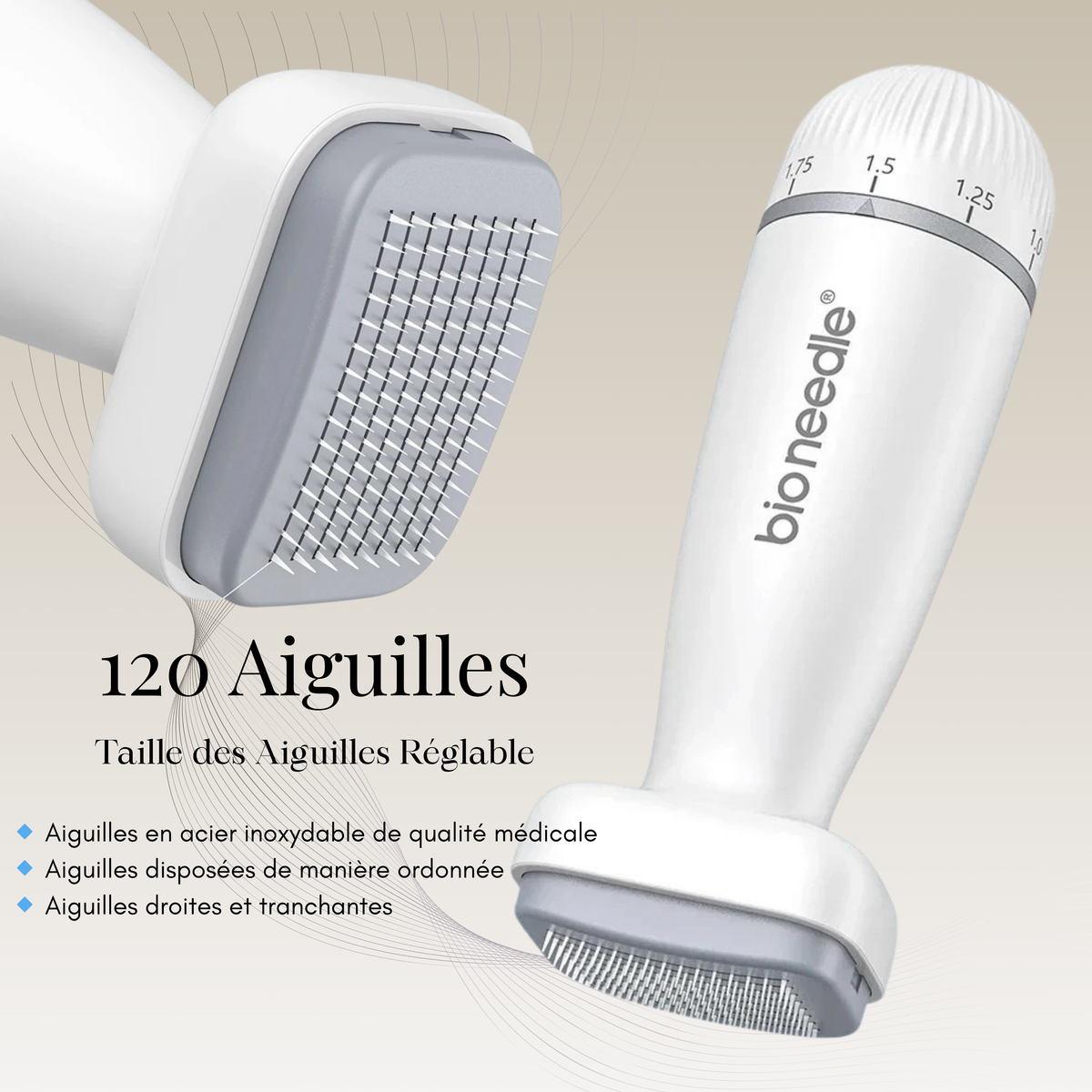 Bio Needle 120 – Derma Stamp Microneedling Ajustable (0,25 à 2,0 mm) – Visage & zones ciblées