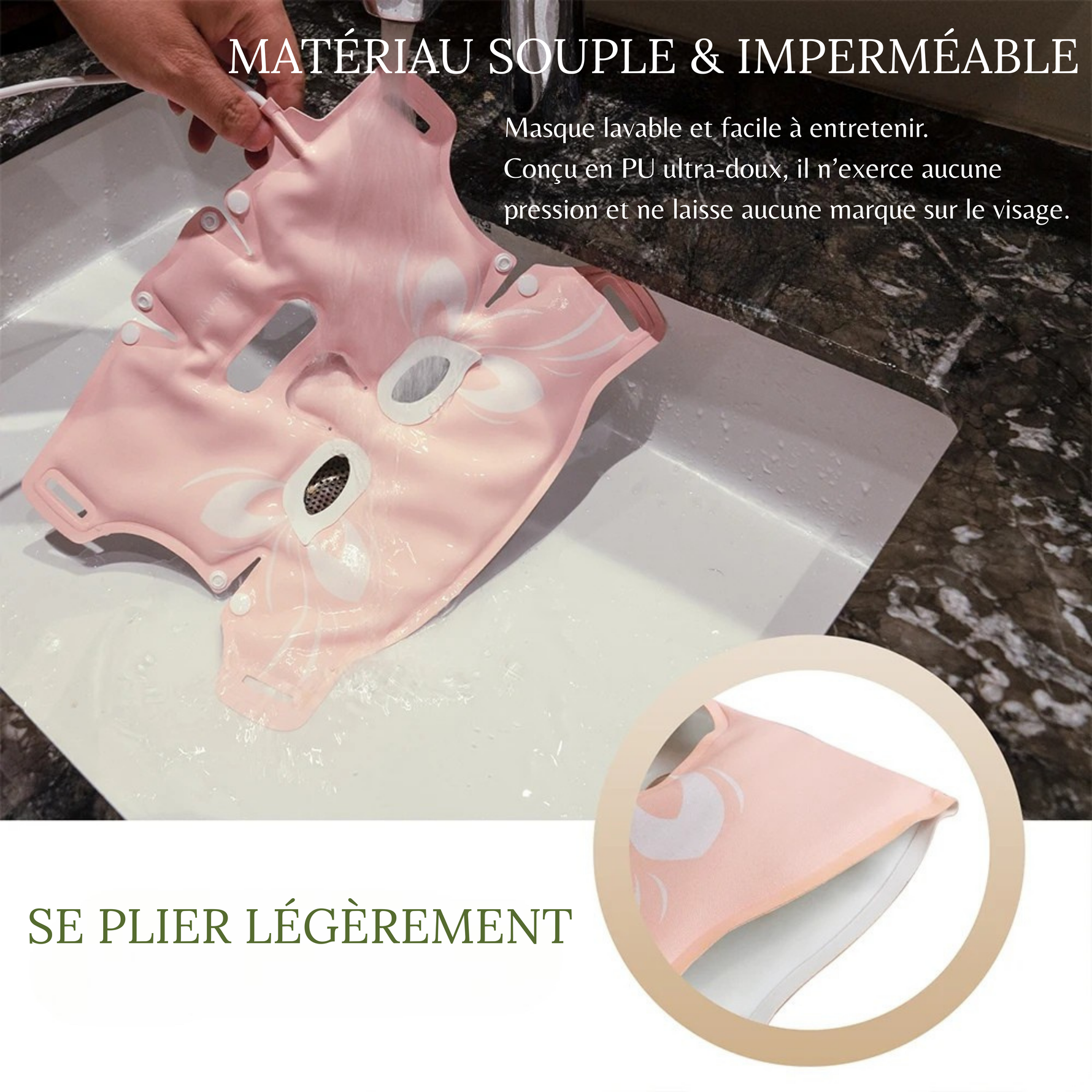 Son design 3D souple et pliable épouse parfaitement les formes du visage, tandis que la fonction chaleur douce optimise la circulation sanguine et l’absorption des soins (jusqu’à 90 %). Facile à utiliser, lavable (IPX5) et équipé de protections oculaires en silicone, il garantit une expérience sûre et agréable.