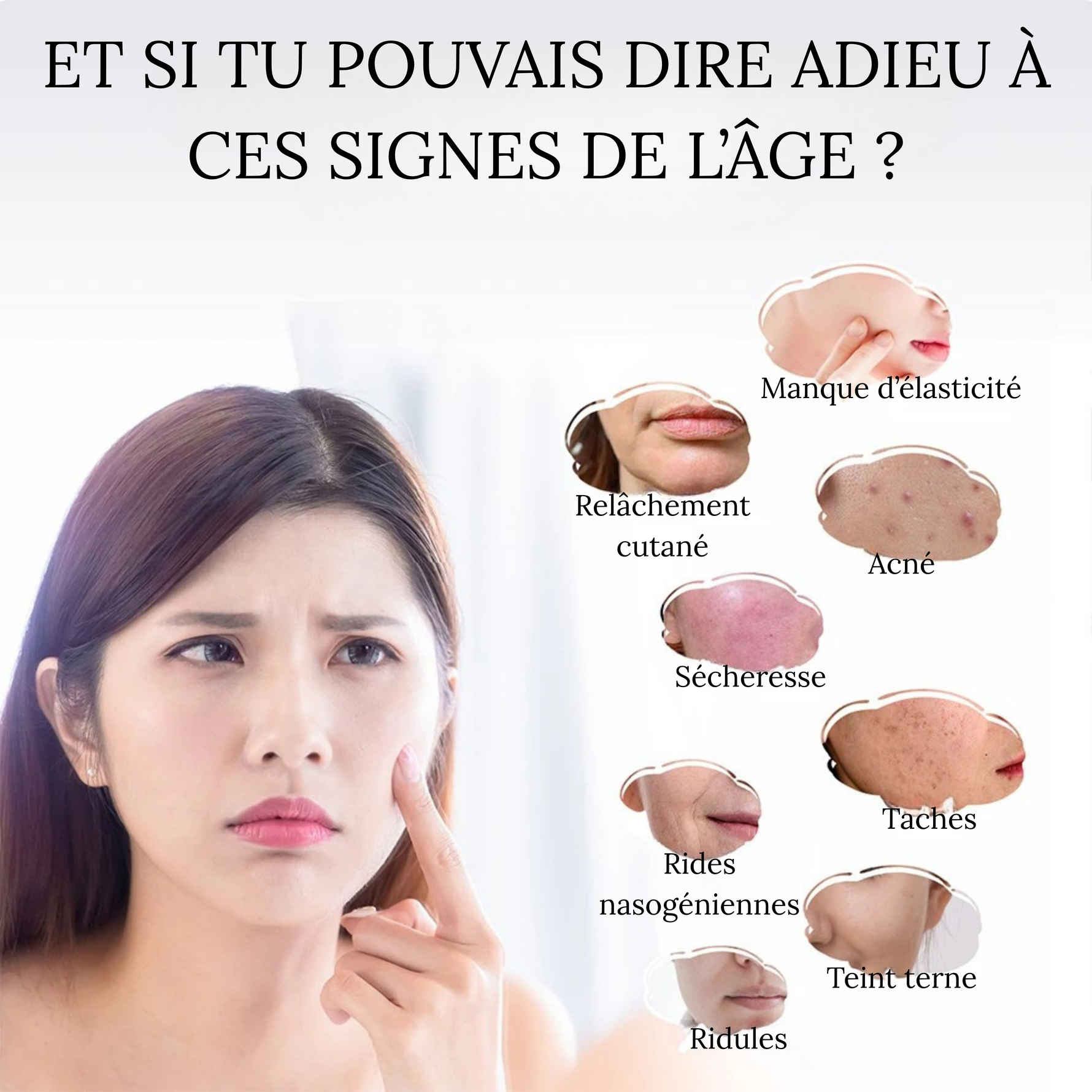✔ Apaisement et éclat immédiat : les lumières jaune et violette calment les rougeurs, favorisent la cicatrisation et la régénération cellulaire.