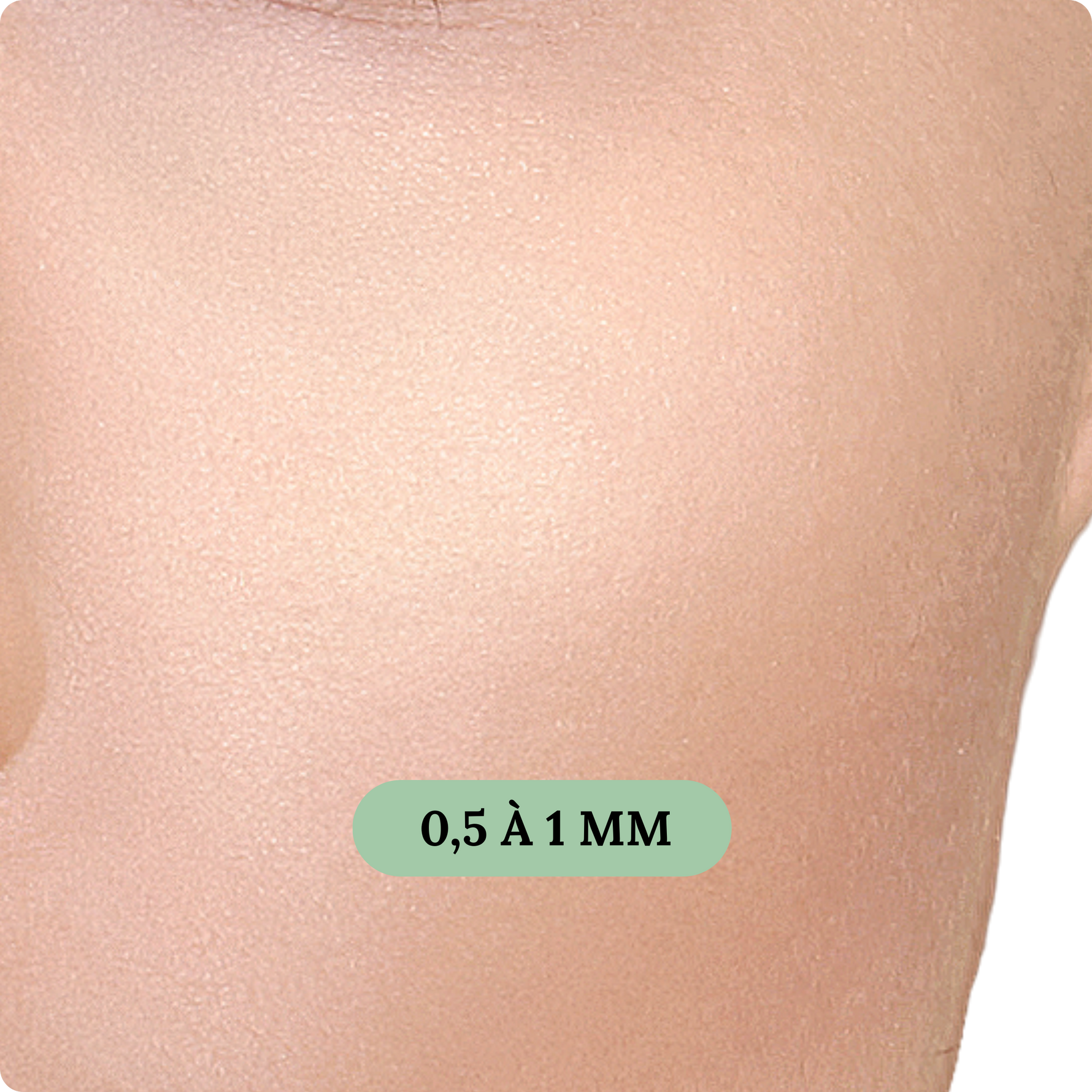 Ces micro-canaux stimulent naturellement la production de collagène et d’élastine, favorisant ainsi le renouvellement cellulaire et l’absorption optimale des actifs appliqués pendant le soin.