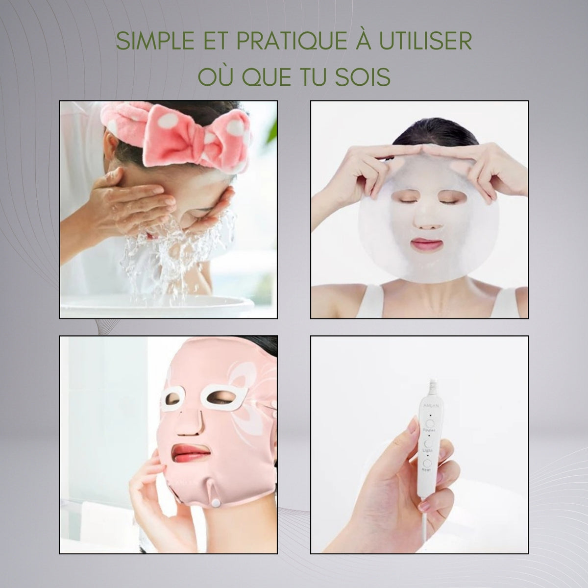 Son design 3D souple et pliable épouse parfaitement les formes du visage, tandis que la fonction chaleur douce optimise la circulation sanguine et l’absorption des soins (jusqu’à 90 %). Facile à utiliser, lavable (IPX5) et équipé de protections oculaires en silicone, il garantit une expérience sûre et agréable.