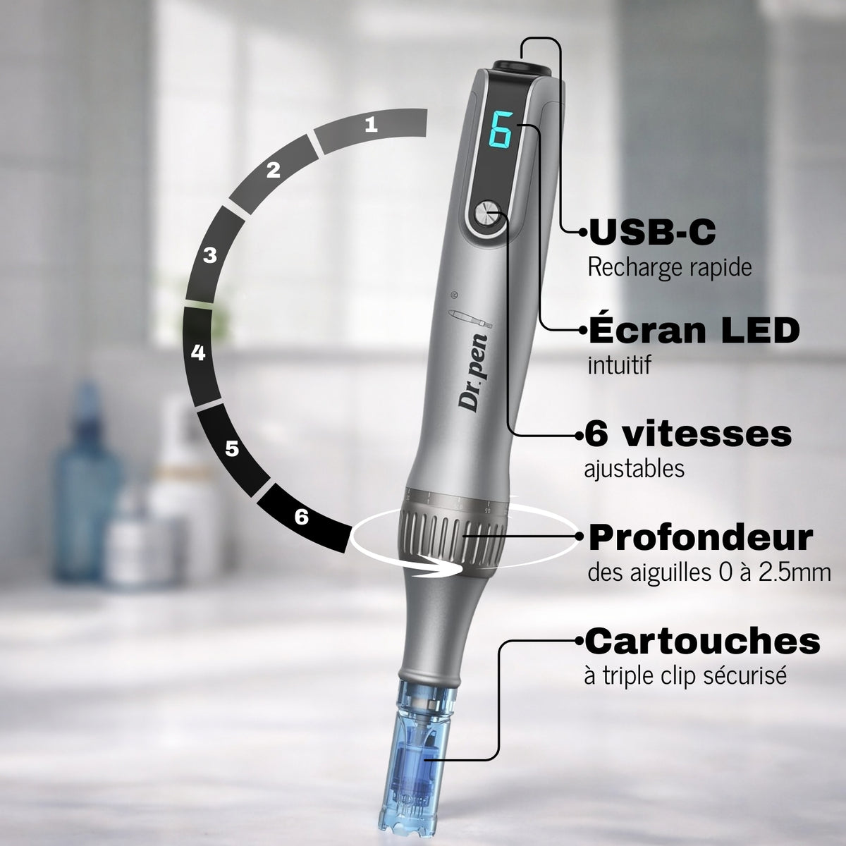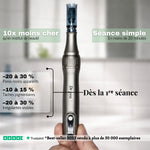 Équipé de cartouches de dernière génération avec système anti-reflux, triple sécurité et aiguilles stériles ultra-précises, il assure une application hygiénique et une diffusion optimale des soins.