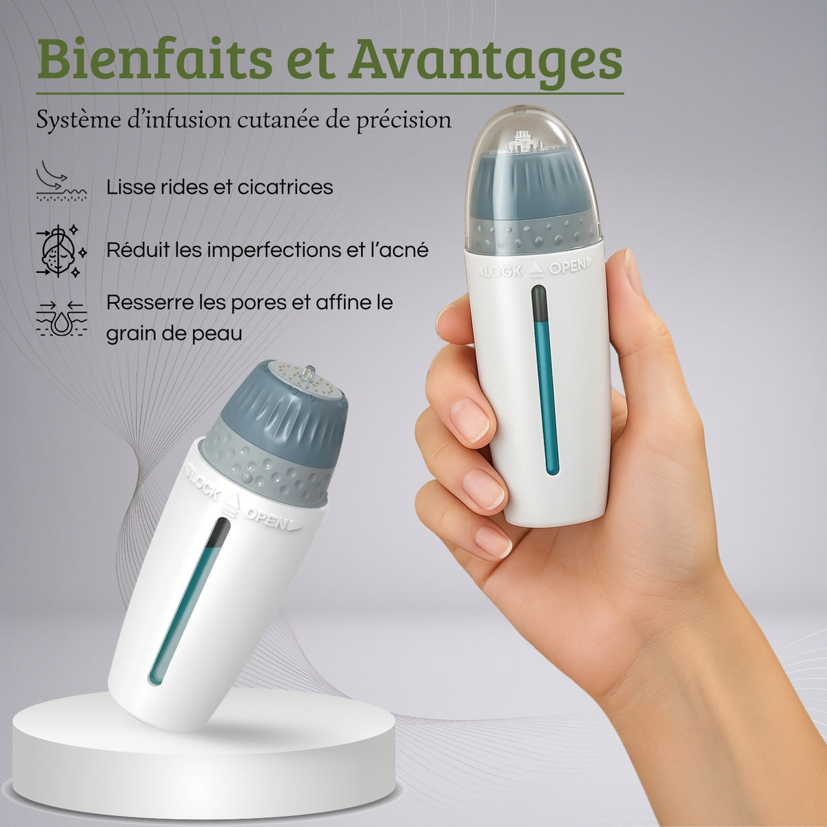 Le réservoir de 10 ml libère le sérum de façon régulière pour une pénétration optimale.