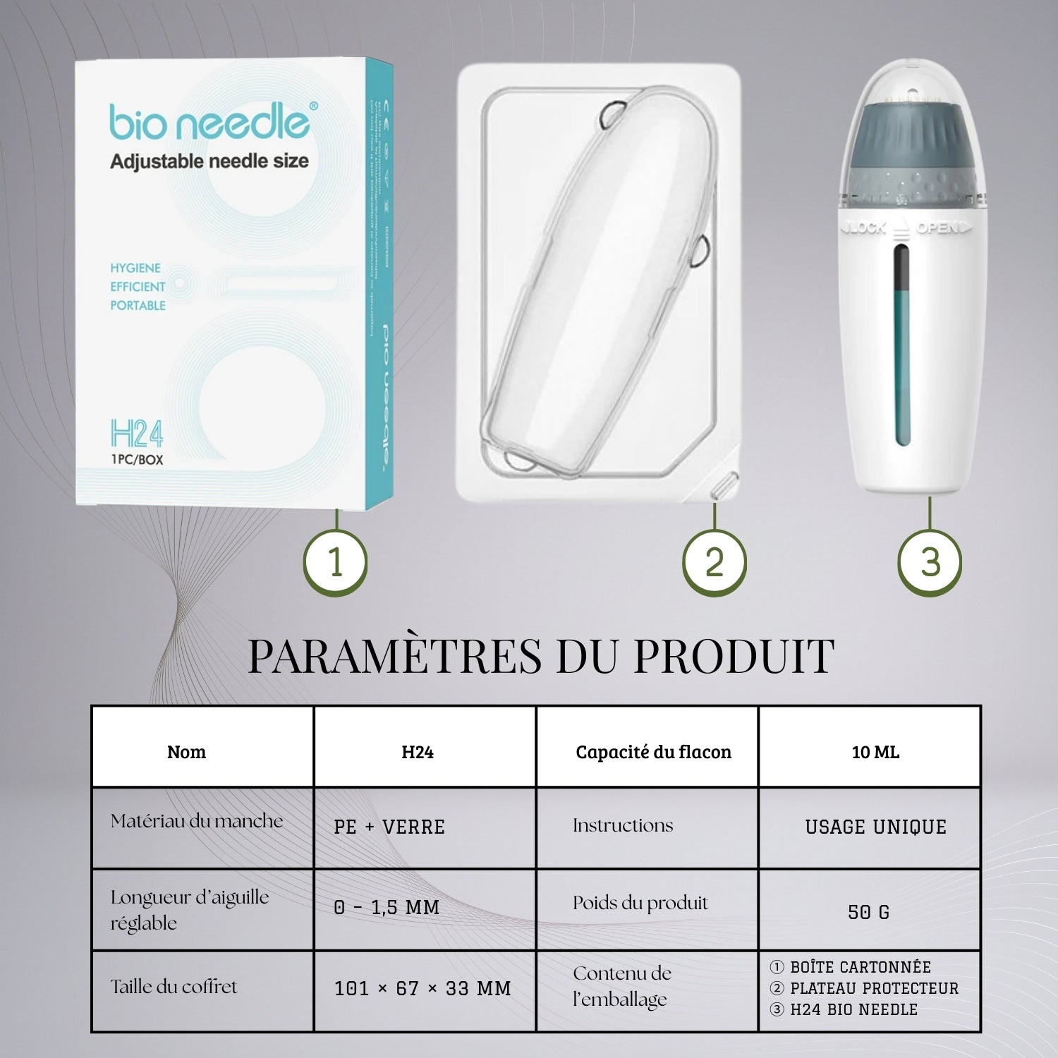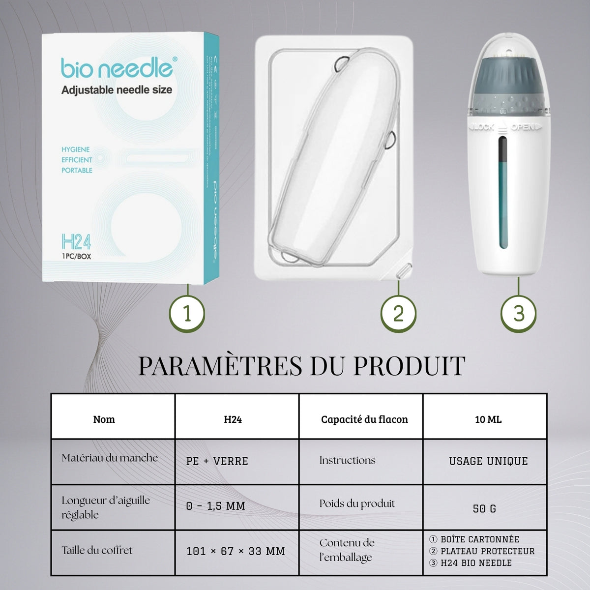 Conçu selon des standards rigoureux, le Bio Needle H24 offre une combinaison idéale entre sécurité, performance, et résultats visibles. C’est l’outil parfait pour une routine beauté complète et efficace, directement à domicile.