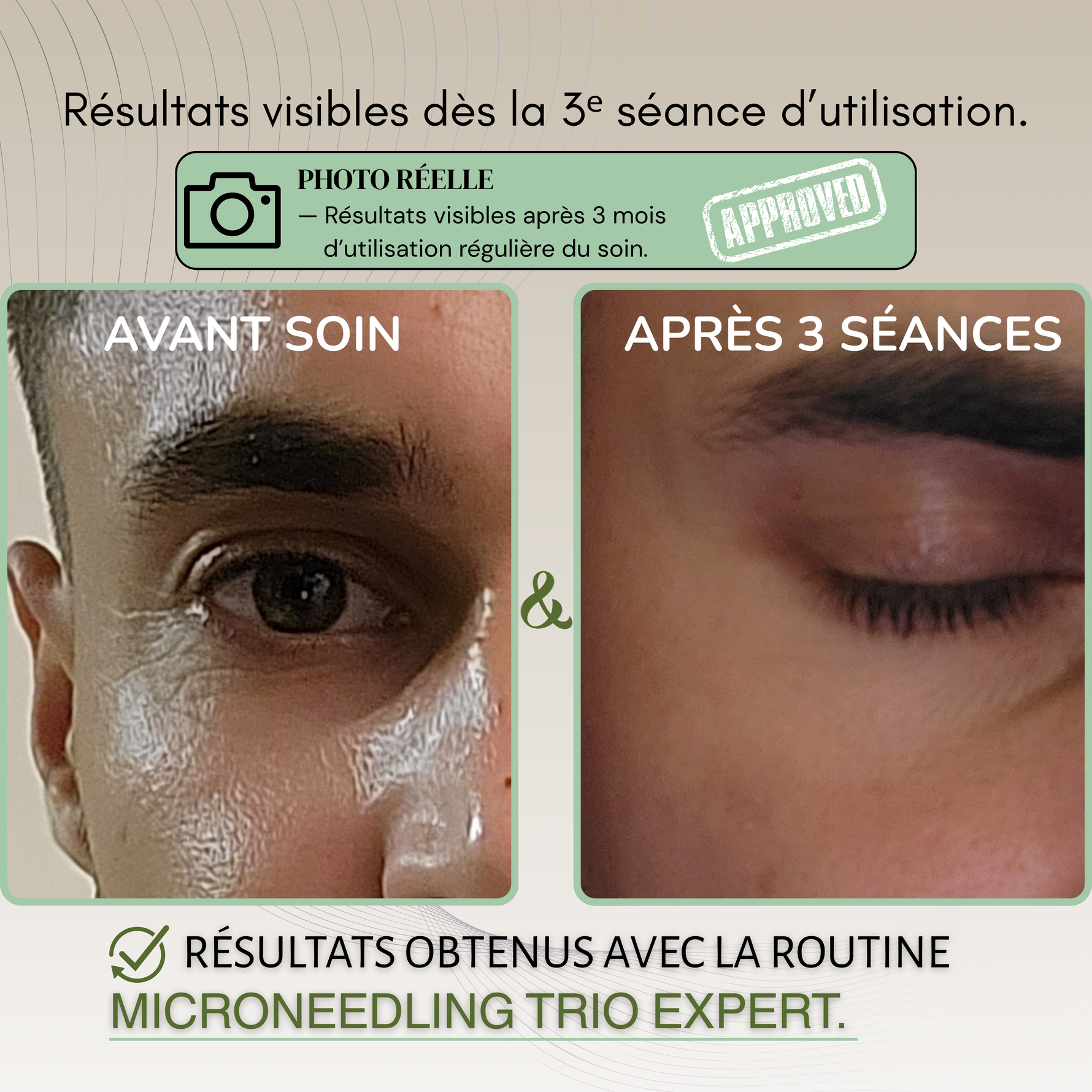 Observés chez nos clients après 3 à 6 séances de microneedling à domicile.
