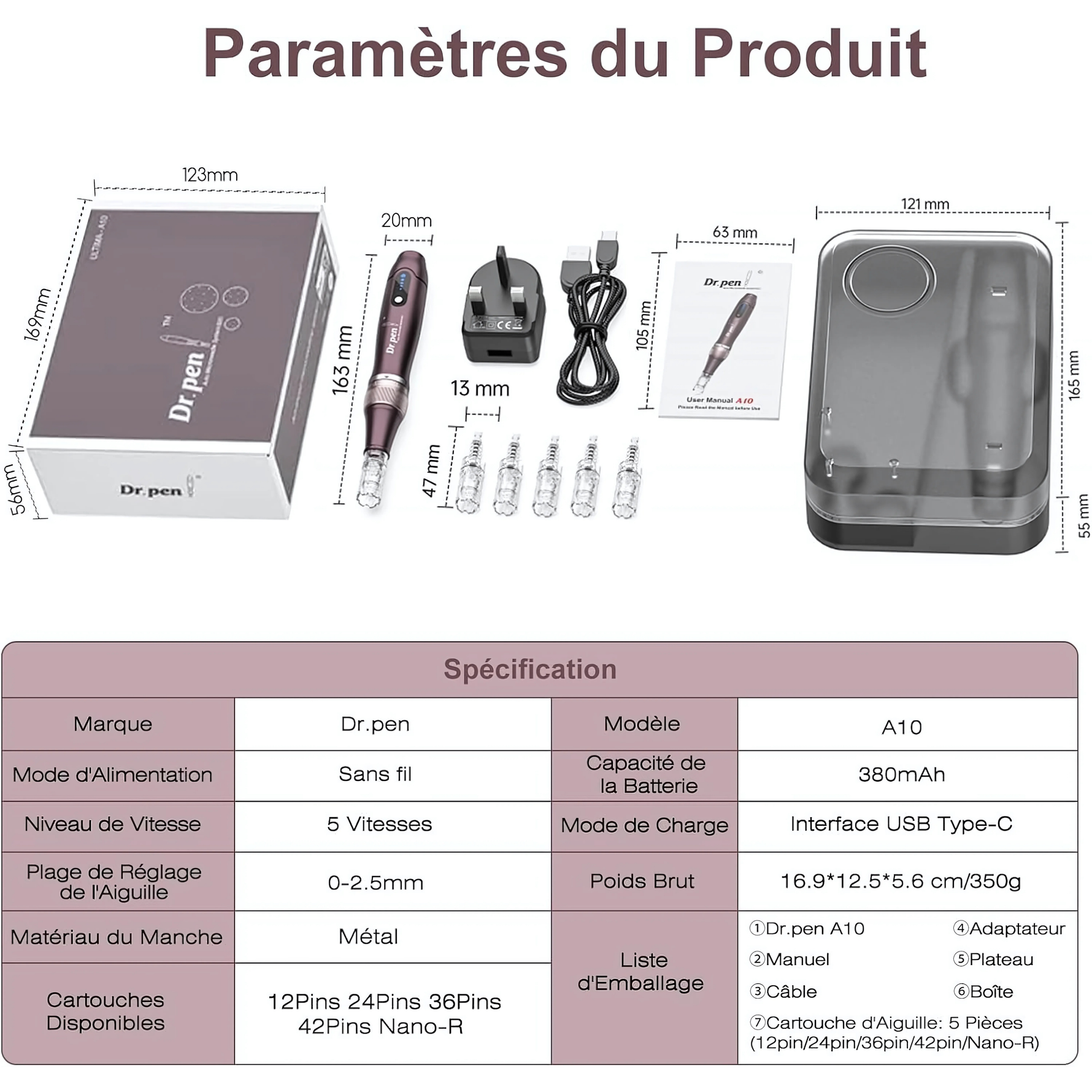 Produit officiel Dr.Pen Ultima A10, certifié CE, livré directement depuis l’usine du fabricant.